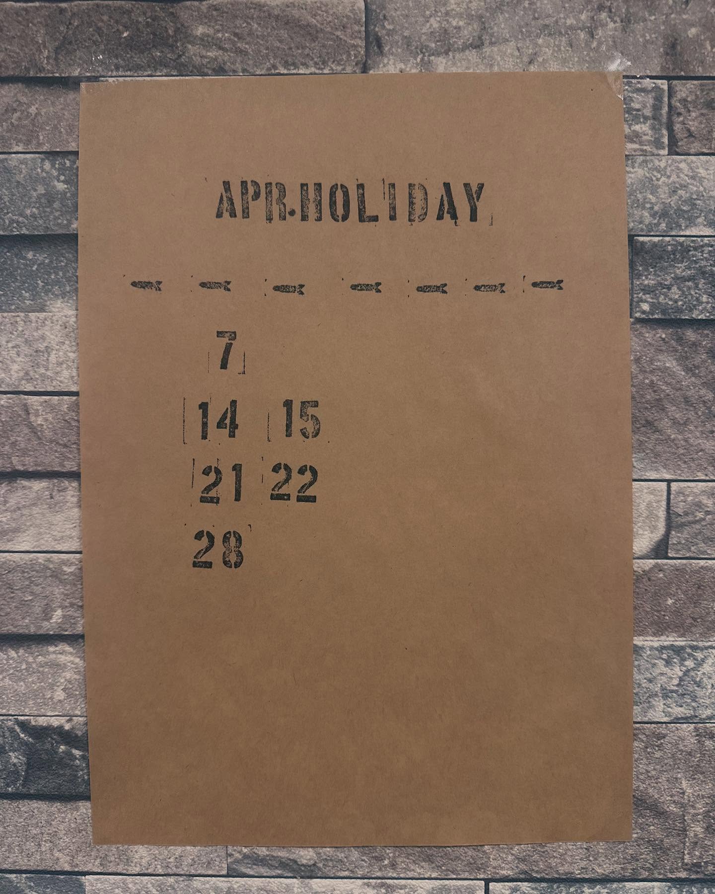 4月のお休みのお知らせです。